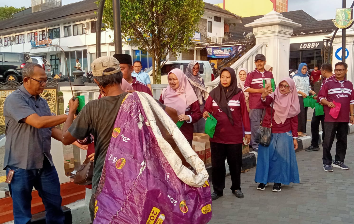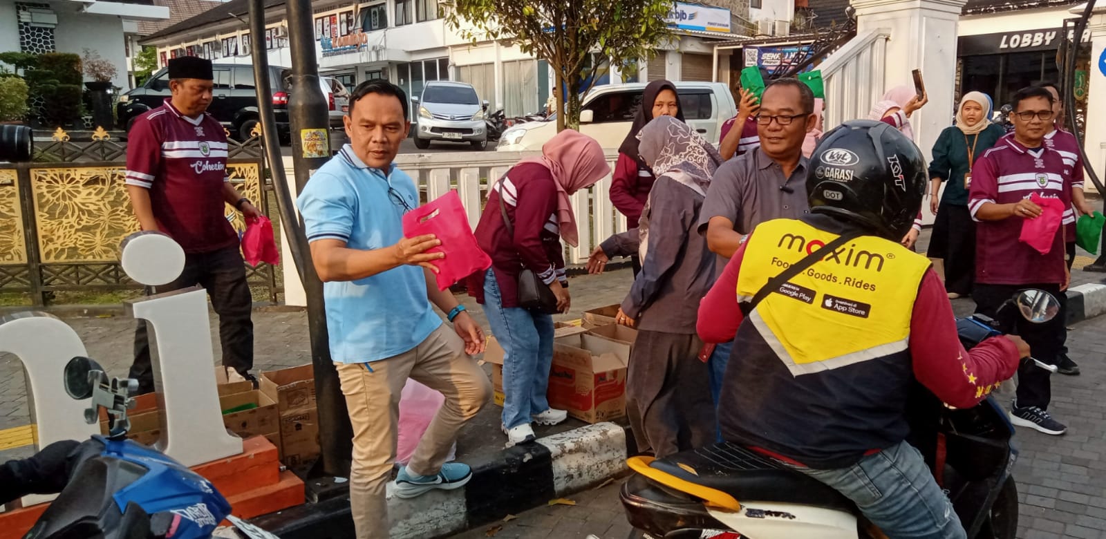 Menjelang waktu berbuka puasa, para lurah tampak berdiri di pinggir jalan dan satu per satu menghampiri warga, khususnya umat Muslim yang tengah menjalankan ibadah puasa. Mereka membagikan paket takjil kepada para pejalan kaki maupun pengendara roda dua dan roda empat yang melintas di kawasan tersebut.