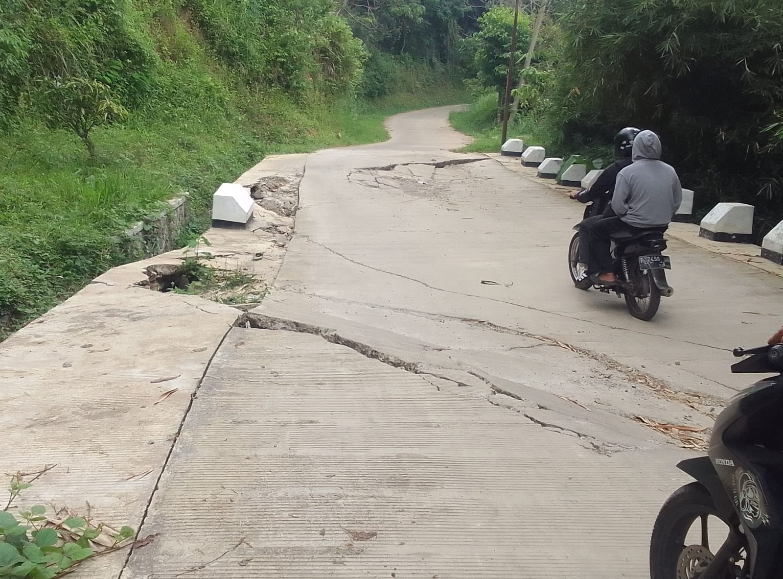 Namun, saat ini badan jalan terancam ambruk akibat pergeseran tanah yang terjadi sebulan lalu.