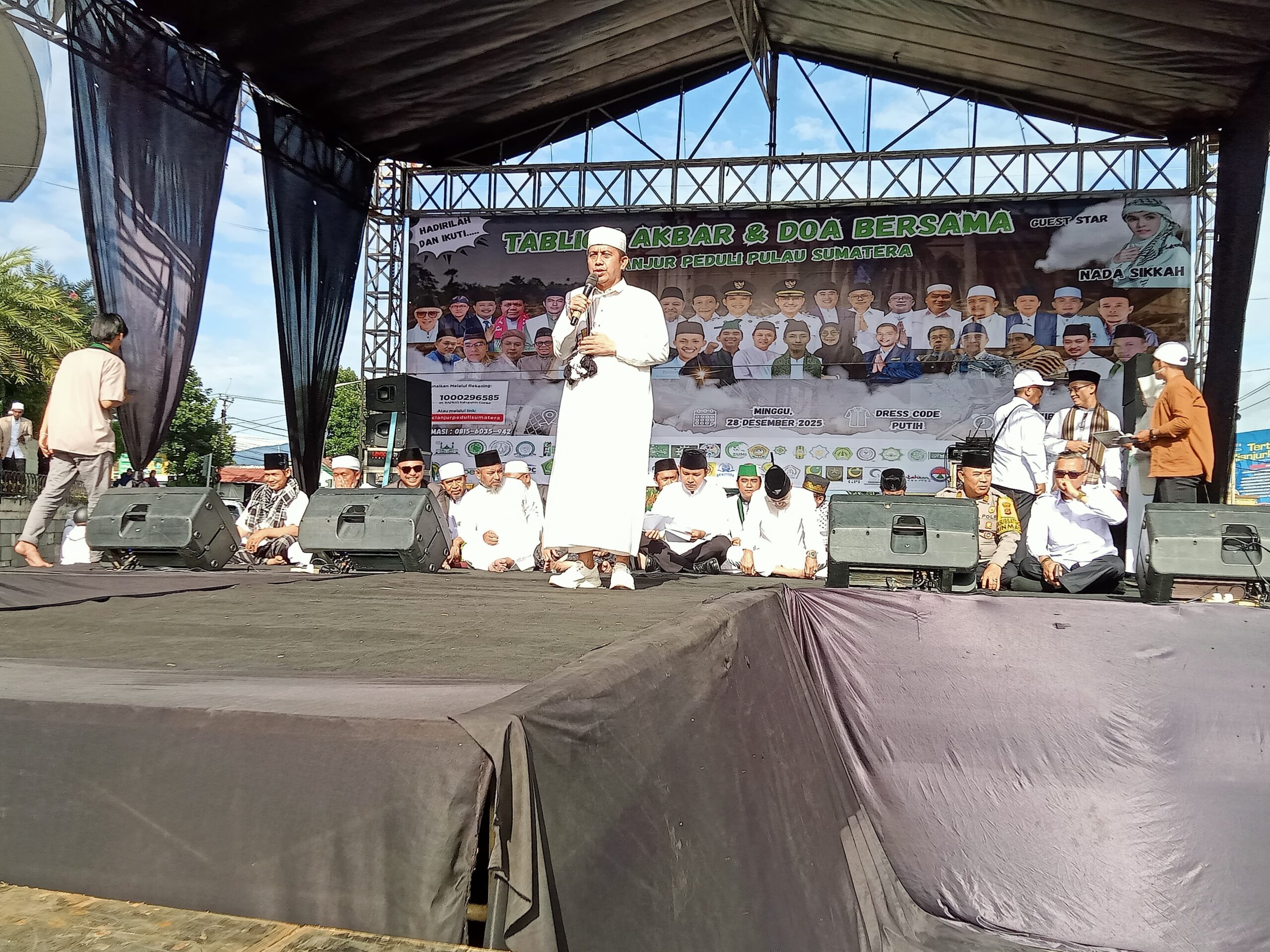 “Alhamdulillah, hari ini kami berkolaborasi dengan MUI menggelar Tabligh Akbar yang difokuskan pada pengumpulan donasi untuk wilayah Sumatera dan Aceh. Kami sangat mengapresiasi antusiasme para donatur, khususnya Pemerintah Daerah Kabupaten Cianjur. Kehadiran Bapak Bupati dan Wakil Bupati menjadi bukti besarnya kepedulian kita semua,” ujar H. Ade.