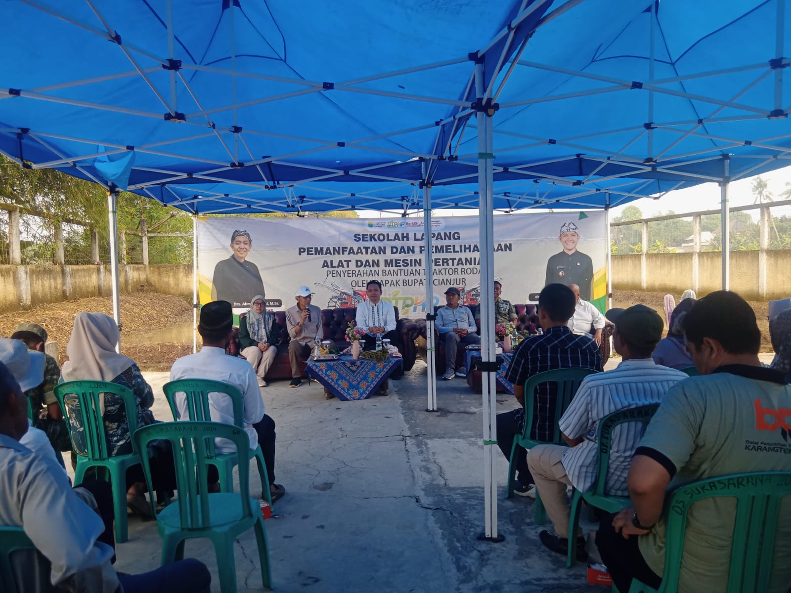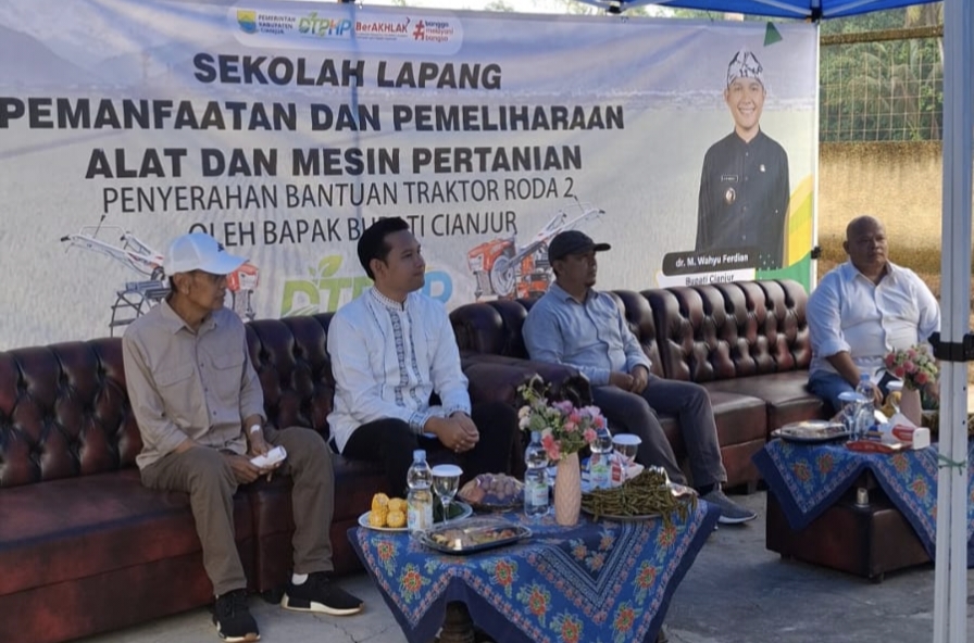 CIANJUR – Pemerintah Kabupaten Cianjur terus mendorong percepatan tanam dan peningkatan produksi pertanian. Salah satunya melalui kegiatan Sekolah Lapang Pemanfaatan dan Pemeliharaan Alat dan Mesin Pertanian (Alsintan) yang dibarengi dengan penyaluran bantuan traktor roda dua kepada kelompok tani.