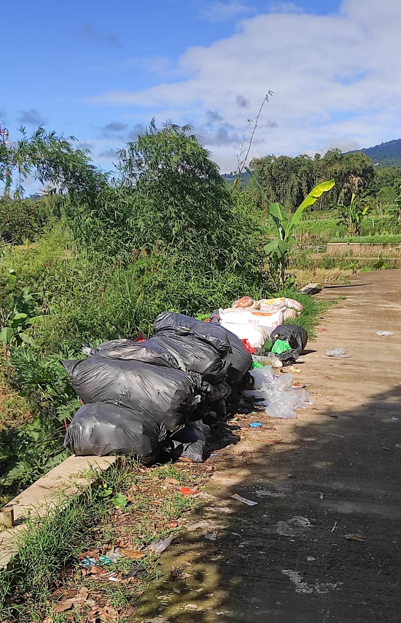 Warga menemukan tumpukan sampah berupa kantong plastik dan sisa kemasan makanan MBG yang dibuang di pinggir jalan serta area terbuka, tanpa sistem pengelolaan yang jelas. Kondisi itu menimbulkan bau tidak sedap, mengganggu kenyamanan warga, serta berpotensi mencemari lingkungan dan membahayakan kesehatan masyarakat sekitar.