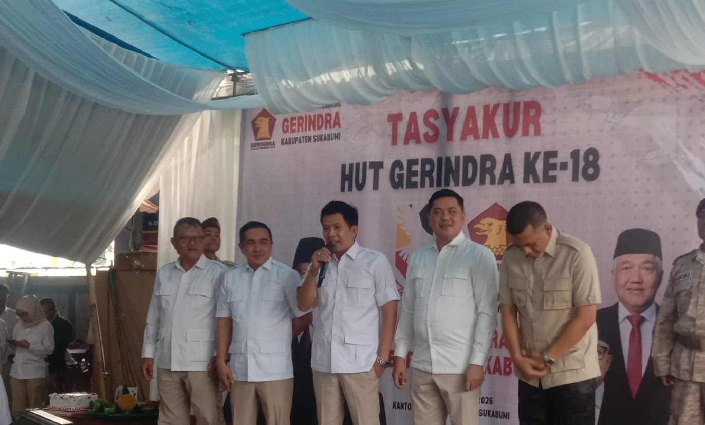 SUKABUMI — Ketua Fraksi Partai Gerindra DPRD Kabupaten Sukabumi, Teddy Setiadi, yang juga merupakan pengurus Dewan Pimpinan Cabang (DPC) Partai Gerindra Kabupaten Sukabumi, menggelar tasyakuran dalam rangka memperingati Hari Ulang Tahun (HUT) Partai Gerindra ke-18 dengan mengusung tema “Kompak Bergerak, Berdampak”.