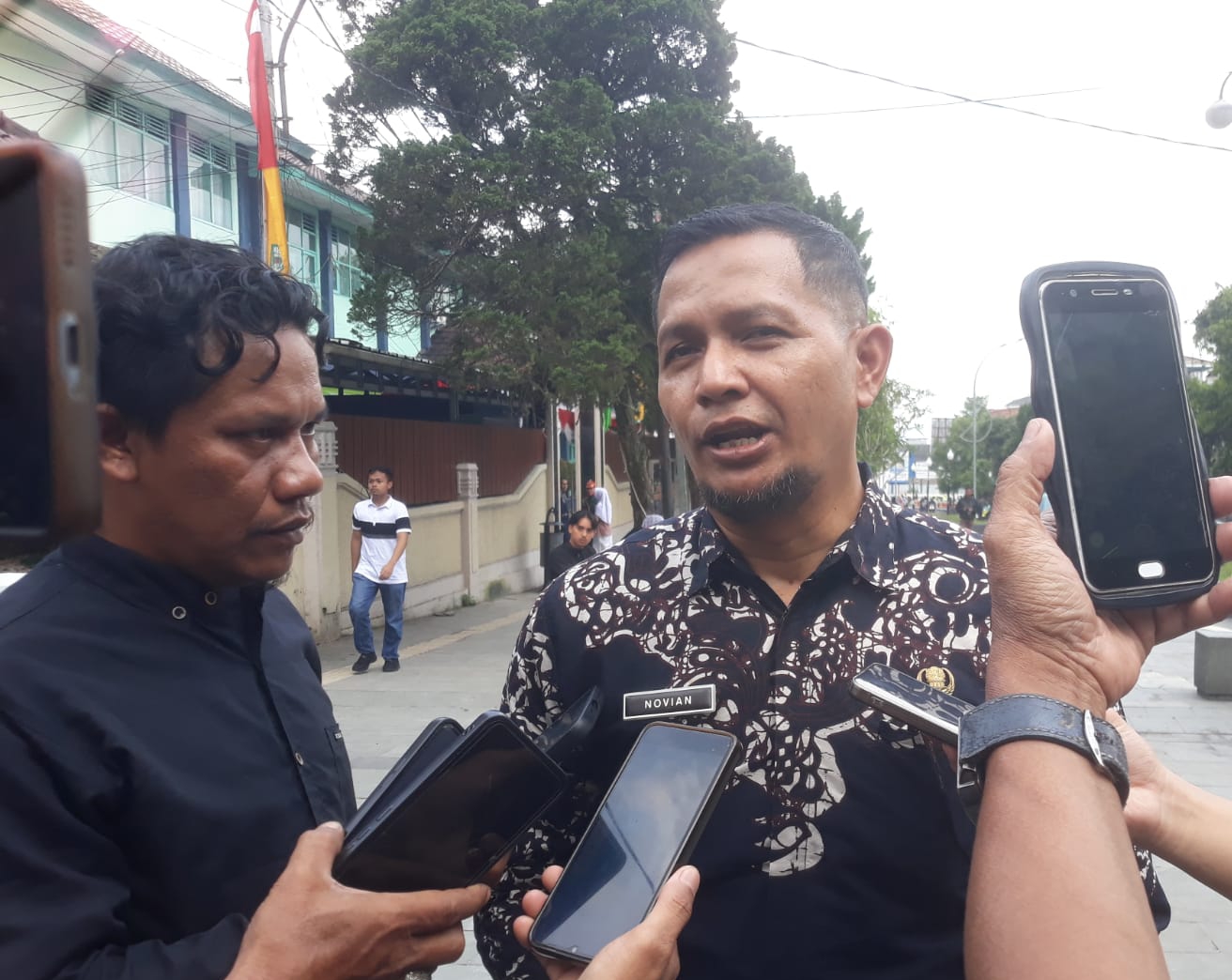 Kepala Dinas Pendidikan dan Kebudayaan Kota Sukabumi, Novian Restiadi, saat diwawancarai awak media di halaman DPRD Kota Sukabumi.