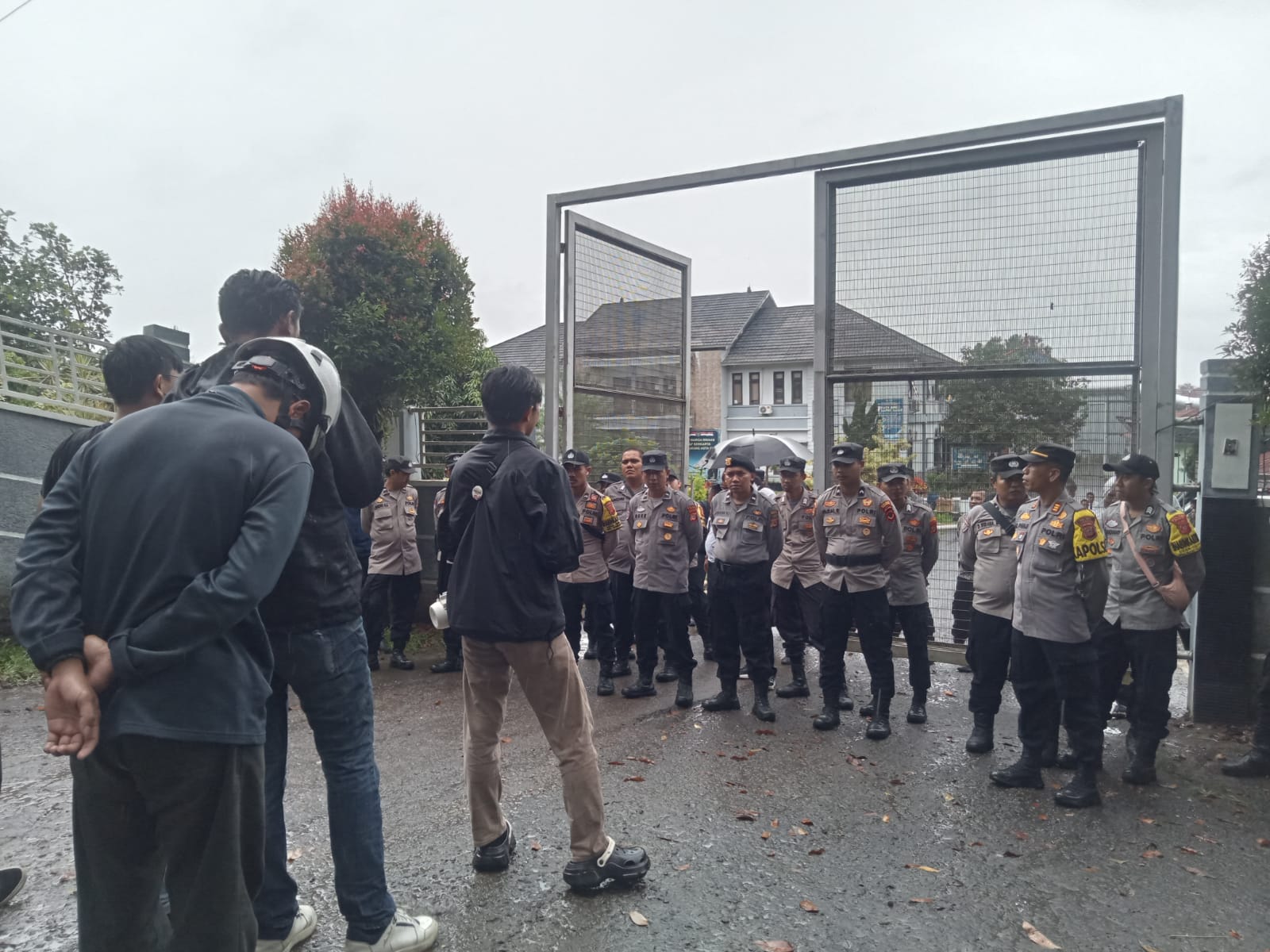 SUKABUMI | Aksi unjuk rasa mahasiswa yang tergabung dalam Gerakan Mahasiswa Sukabumi (GRASI) digelar di depan gerbang Lembaga Pemasyarakatan (Lapas) Warungkiara, Kecamatan Warungkiara, Kabupaten Sukabumi, Senin (15/12/2025).