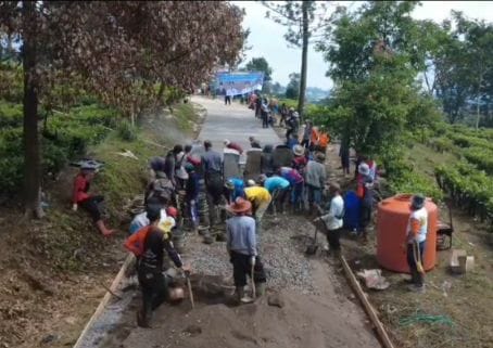 Melalui CSR, Pemdes Sukamulya -Cugenang Perbaiki Ruas Jalan Perkebunan Teh Gedeh