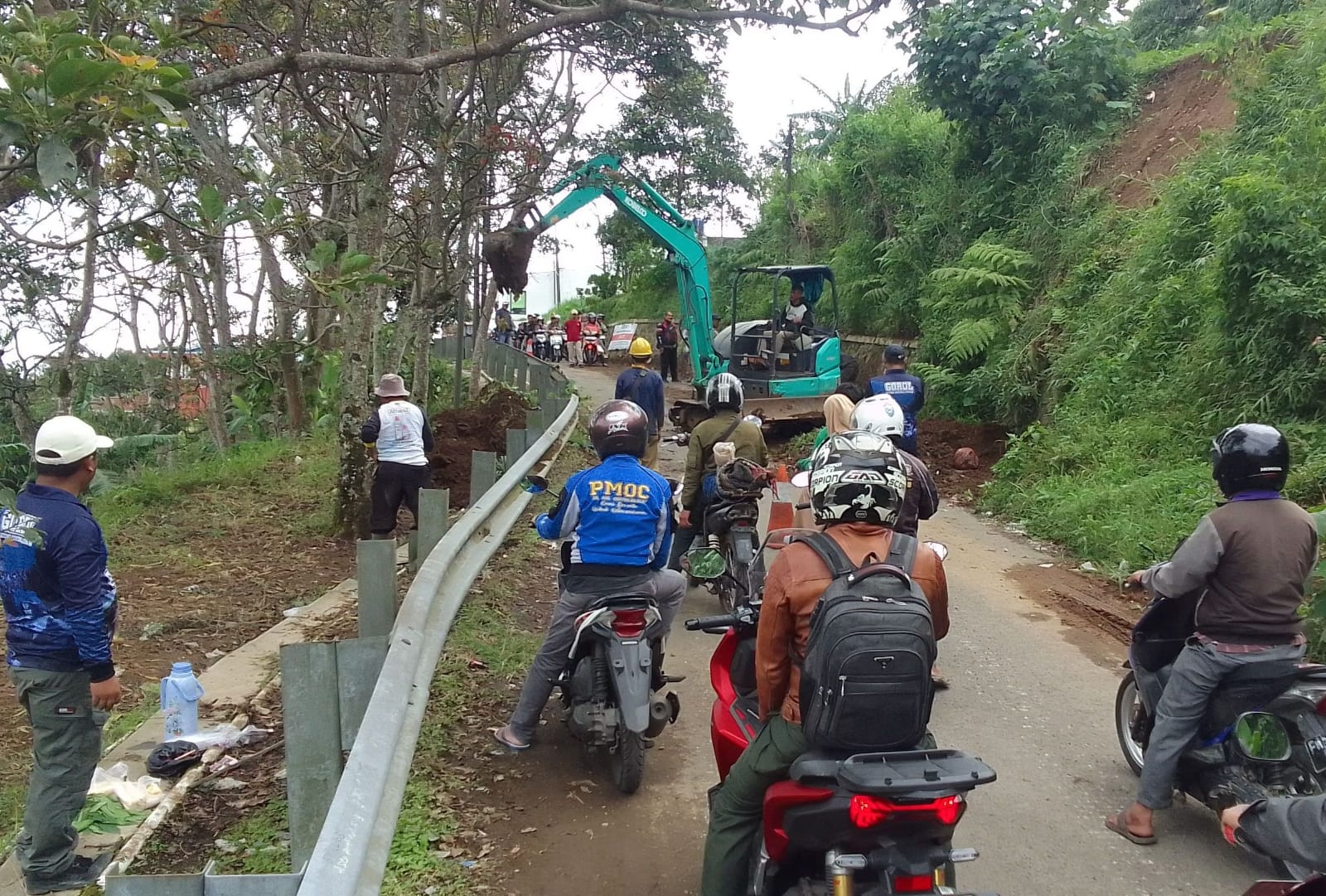 Pemdes Sindangjaya -Cipanas Inisiasi Pengerukan Gundukan bekas Tanah Longsoran di Ruas Jalan Ciketug