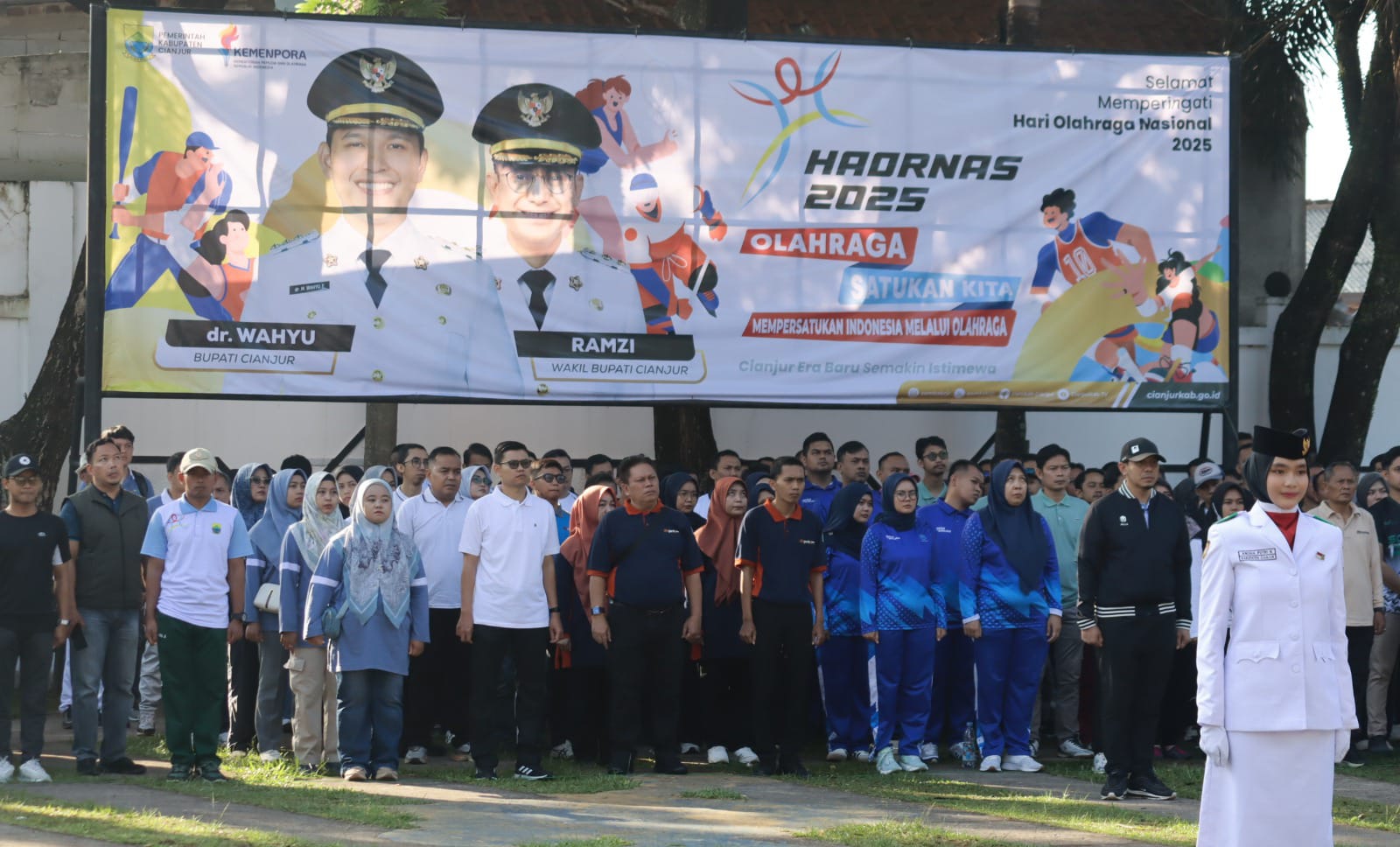 CIANJUR | reaksinusantaranews.com – Pemerintah Kabupaten (Pemkab) Cianjur dan Disdikpora Kabupaten Cianjur melaksanakan Upacara Peringatan Hari Olahraga Nasional (Haornas) di lapangan eks parkir Pemkab Cianjur, Senin (22/9/2025).