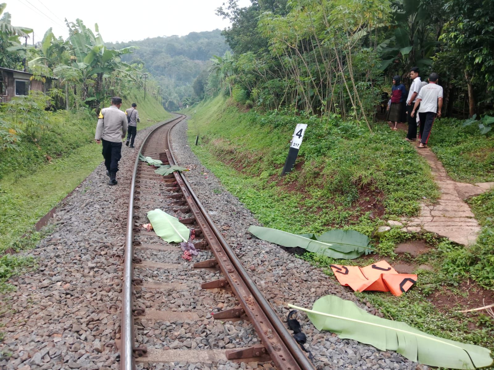 GARUT | Polsek Cibatu Polres Garut mengevakuasi korban kecelakaan yang tertemper Kereta Api di jalur rel KM 217+3/4, petak jalan Kampung Karoya RT 03/03 Desa Karyamukti Kecamatan Cibatu, Kabupaten Garut, pada Minggu (07/12/2025) sekitar pukul 05.10 WIB.