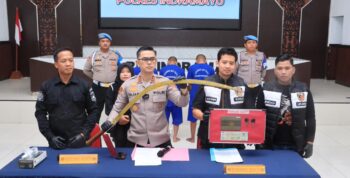 Saat diamankan, petugas menemukan 3 buah senjata tajam (sajam) di lokasi.