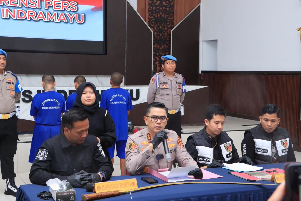 Melalui kegiatan press release di Aula Atmaniwedhana Polres Indramayu, Kamis (4/12/2025), Kapolres Indramayu AKBP Mochamad Fajar Gemilang membeberkan penangkapan komplotan pelaku pencurian dengan kekerasan (begal) yang menimpa seorang remaja perempuan di wilayah Kecamatan Kandanghaur.