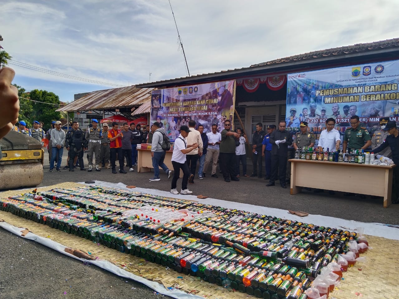 CIANJUR | Satuan Polisi Pamong Praja (Satpol PP) dan Pemadam Kebakaran Kabupaten Cianjur memusnahkan ribuan barang bukti hasil operasi penegakan peraturan daerah berupa minuman beralkohol dan rokok ilegal. Kegiatan tersebut berlangsung pada Selasa (16/12/2025) sekitar pukul 07.30 WIB di Kantor Satpol PP dan Damkar Kabupaten Cianjur.