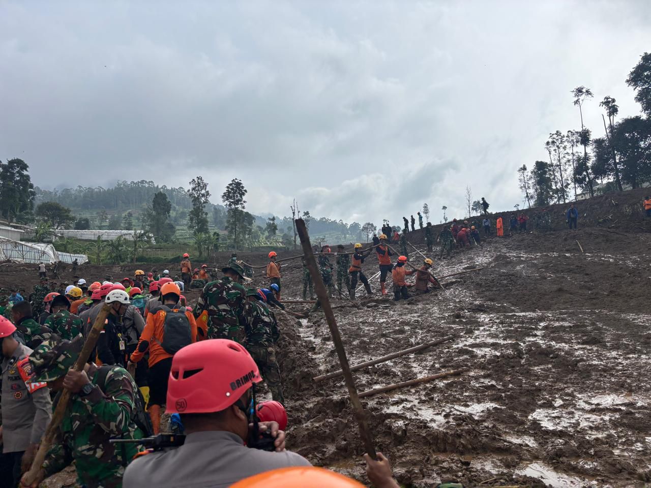 Kabid Humas Polda Jabar Kombes Pol. Hendra Rochmawan, S.I.K., M.H. mengatakan, sejak pagi hari personel Tim SAR gabungan telah melakukan pencarian korban di sejumlah titik rawan dengan tetap mengutamakan keselamatan petugas, mengingat kondisi tanah di lokasi masih labil.