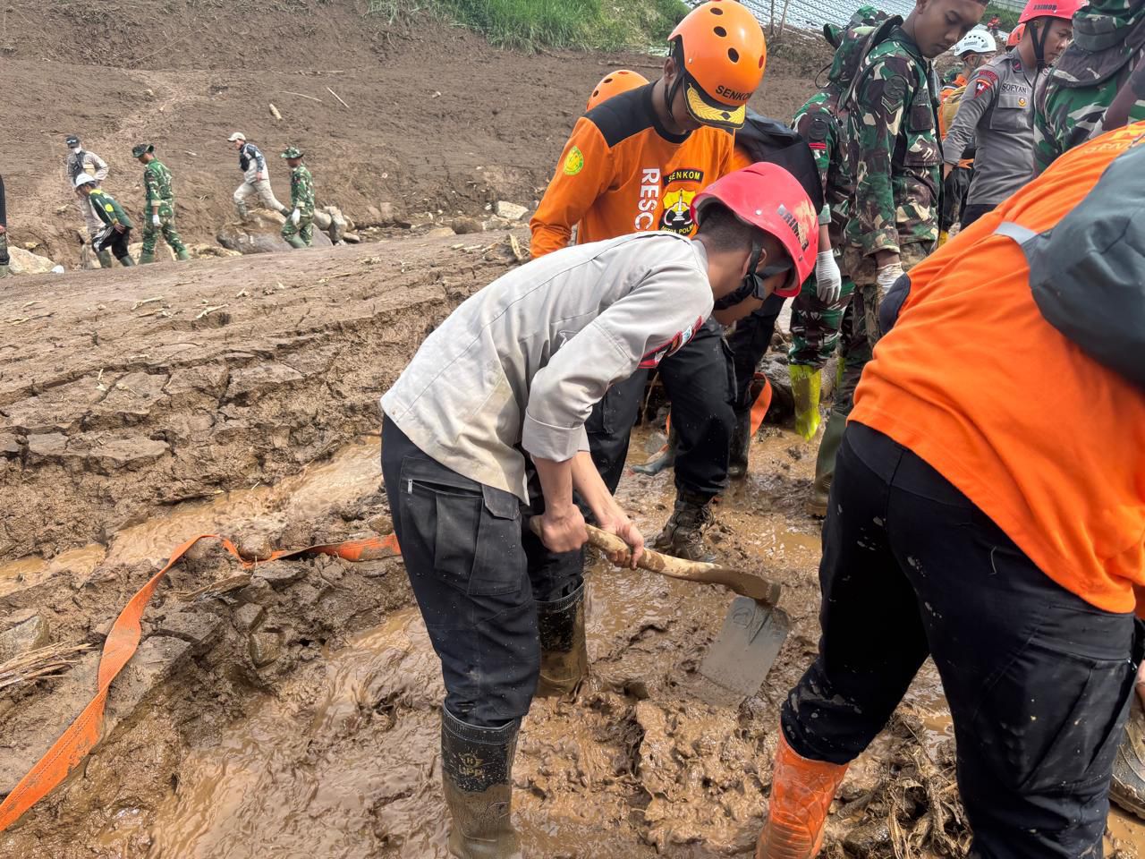 “Proses pencarian dilakukan secara hati-hati dengan memperhatikan faktor keselamatan, karena potensi longsor susulan masih ada,” ujar Kombes Pol. Hendra Rochmawan.